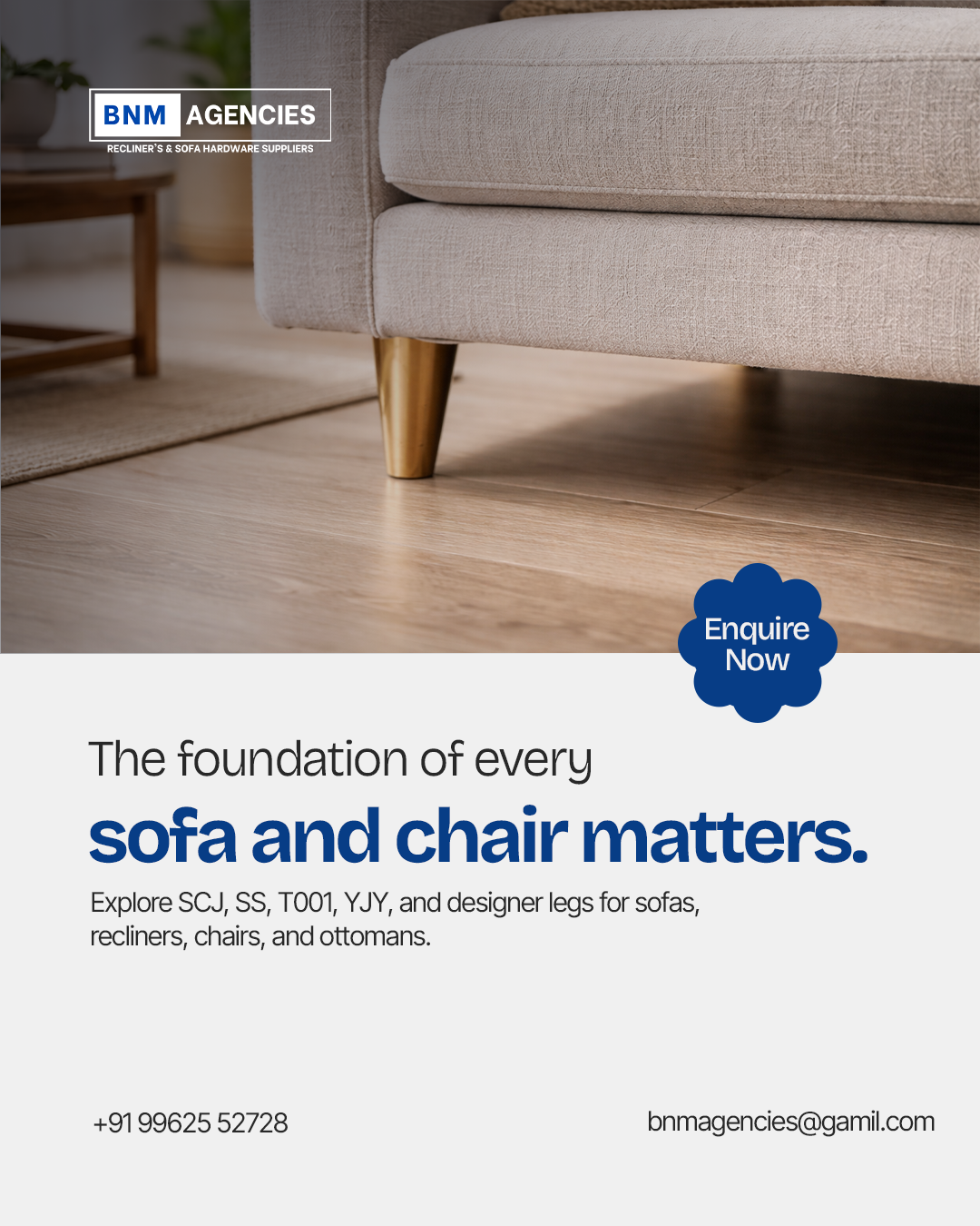BNM Agencies is a reliable supplier of high-quality furniture spare parts, tools, and machinery accessories, serving furniture manufacturers, workshops, upholsterers, and service professionals. We focus on delivering durable components that support smooth production, efficient repairs, and long-term performance.